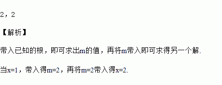 已知方程x2-3x+m=0的一个根是1,则它的另一个根是___,m的值为___..