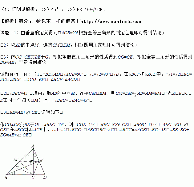 (1)求证:△BCF≌△ACD.