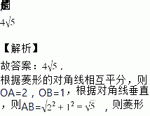 已知菱形ABCD的两条对角线相交于点O,AC=4,BD=2,则菱形ABCD的周长是___________.