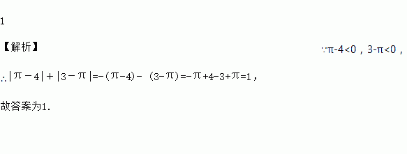 化简:|π-4|+|3-π|=________.