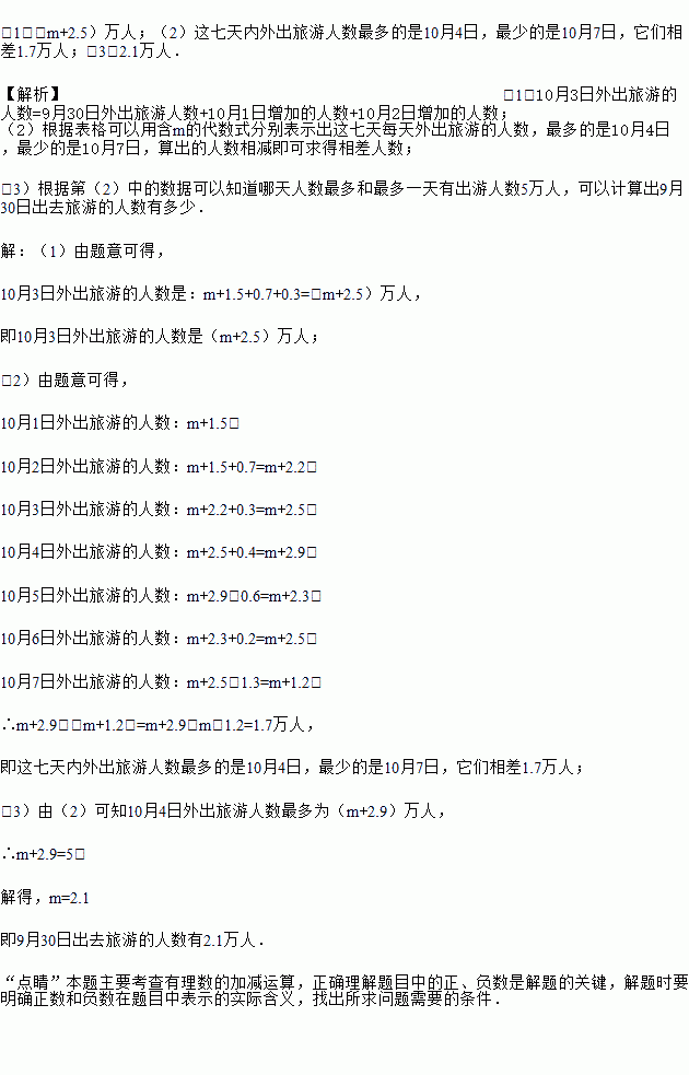 (1)若9月30日外出旅游人数记为m,请用含m的代数式表示10月3日外出旅游的人数.