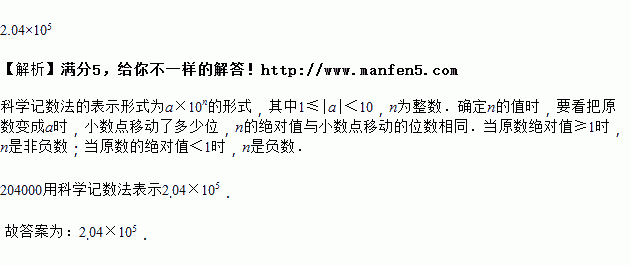 据媒体报道,我国研制的“察打一体”无人机的速度极快,经测试最高速度可达204000米/分,将204000这个数用科学记数法表示为_____.