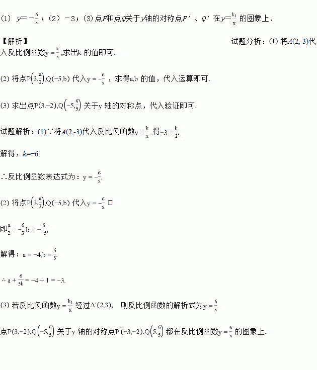 经过A′(2,3),点P和点Q关于y轴的对称点P′、Q′在反比例函数y=