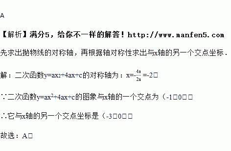 已知二次函数y=ax2+4ax+c的图象与x轴的一个交点为(﹣1,0),则它与x轴的另一个交点的坐标是( )