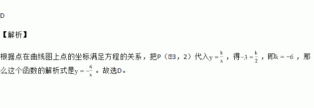 如图,点P(﹣3,2)是反比例函数(k≠0)的图象上一点,则反比例函数的解析式( )