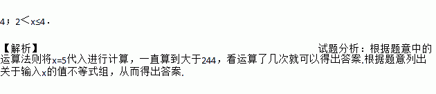 规定:程序运行到“判断结果是否大于244”为一次运算.若x=5,则运算进行______次才停止;若运算进行了5次才停止,则x的取值范围是______.