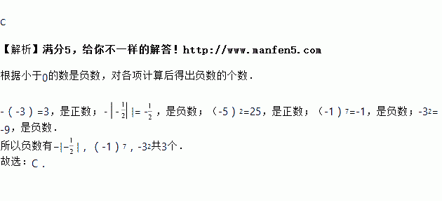 中,负数有( )个