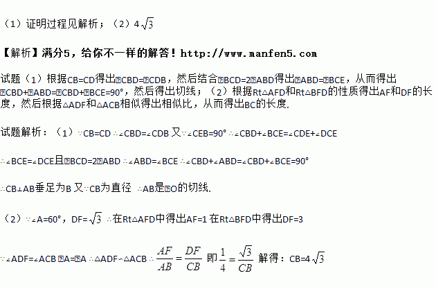 如图,在△ABC中,D为AC上一点,且CD=CB,以BC为直径作☉O,交BD于点E,连接CE,过D作DF