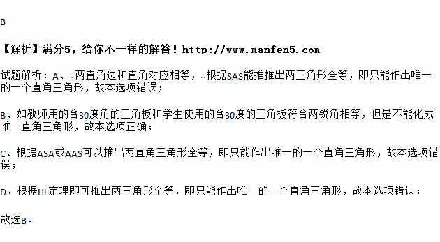 下列各条件不能作出唯一直角三角形的是( )