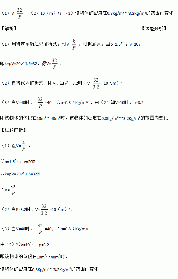 (3)如果将该物体的体积控制在10m3~40m3之间,那么该物体的密度应在什么范围内变化?