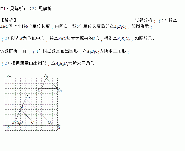 (1)画出△ABC向上平移6个单位长度,再向右平移5个单位长度后的△A1B1C1;