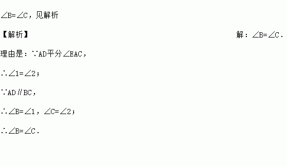 如图,AD∥BC,AD平分∠EAC,你能确定∠B与∠C的数量关系吗?请说明理由.