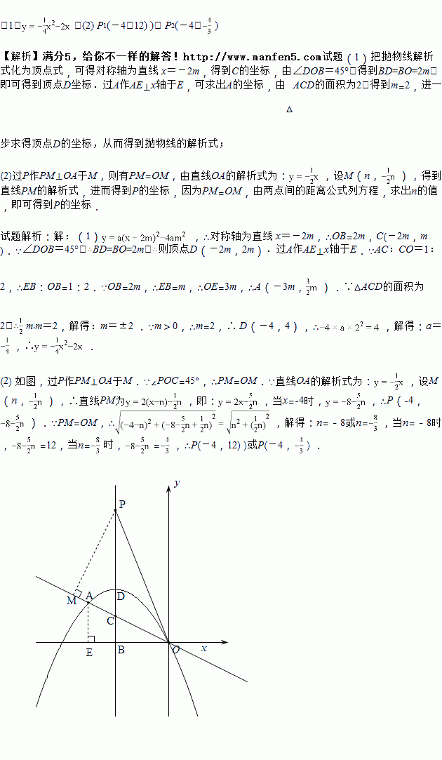 (2) 若点P为抛物线对称轴上的一个点,且∠POC=45°,求点P坐标.
