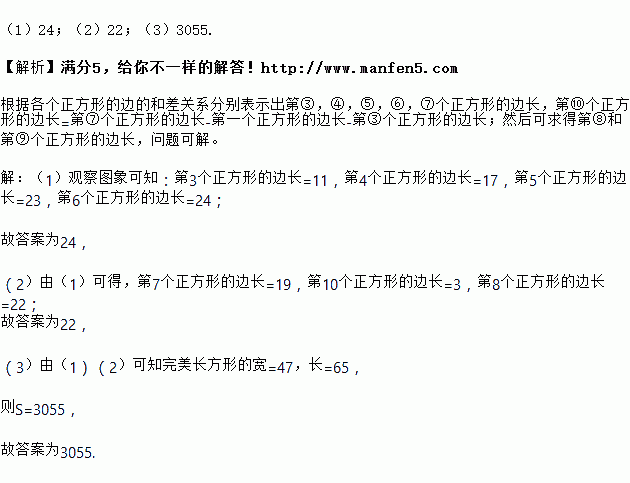 (1)第6个正方形的边长= ;