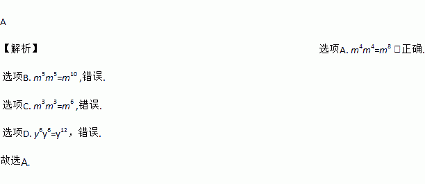 A. m4m4=m8 B. m5m5=2m25 C. m3m3=m9 D. y6y6=2y6
