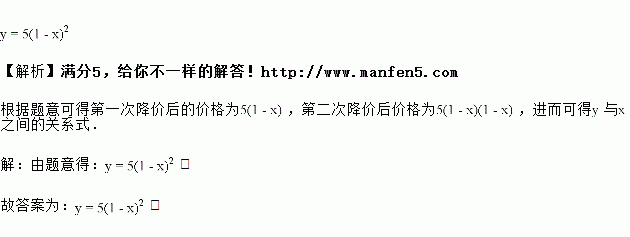 某种商品的价格为元,准备进行两次降价,如果每次降价的百分率都是,经过两次降价后的价格(单位:元)随每次降价的百分率的变化而变化,则与之间的关系式为________.
