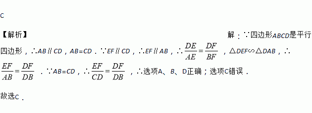 如图,在菱形ABCB中,点E在AD边上,EF∥CD,交对角线BD于点F,则下列结论中错误的是( )