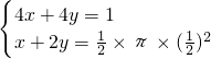 分析:根据总面积为1,半圆的面积为x+2y=