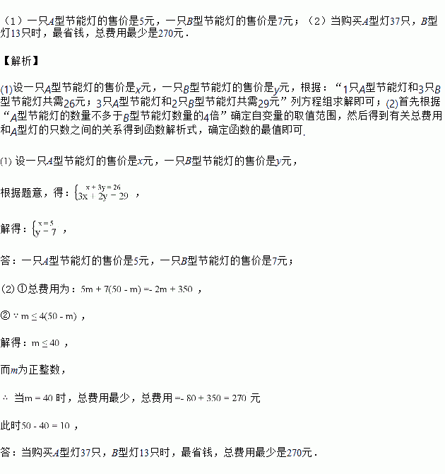 ¹¤³§×¼±¸¹º½øÒ»Åú½ÚÄܵƣ¬ÒÑÖª1Ö»AÐͽÚÄܵƺÍ3Ö»BÐͽÚÄܵƹ²Ðè26Ôª£»3Ö»AÐͽÚÄܵƺÍ2Ö»BÐͽÚÄܵƹ²Ðè29Ôª£®