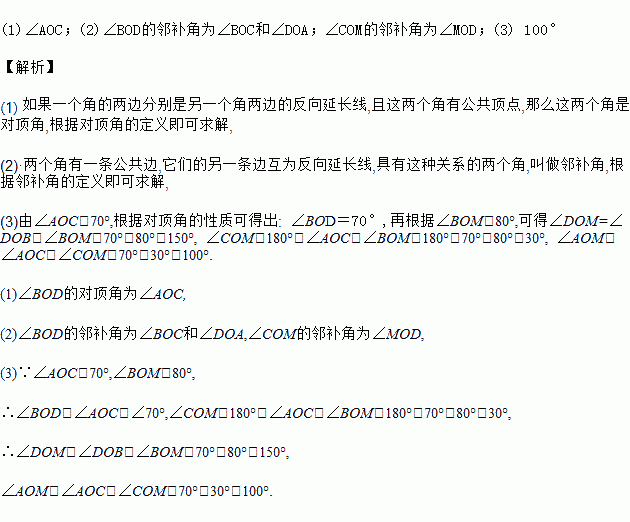 (3)已知∠AOC=70°,∠BOM=80°,求∠DOM和∠AOM的度数.