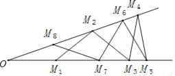 如图,点M1、M2、…M8在∠O的边上,若OM1=M1M2=M2M3=…=M6M7=M7M8=M8O,则∠O的度数是_____度.