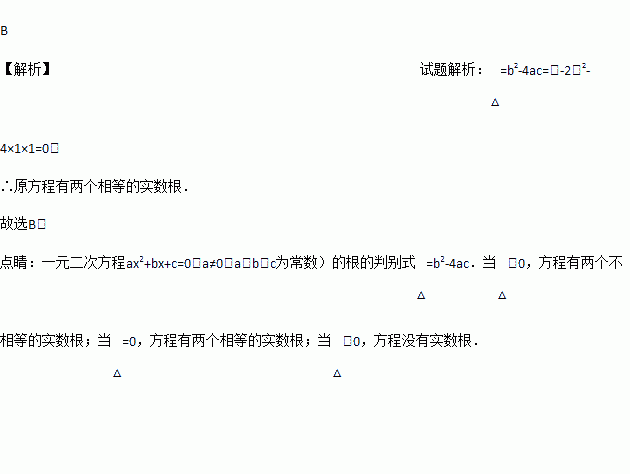 A. 只有一个实数根 B. 有两个相等的实数根