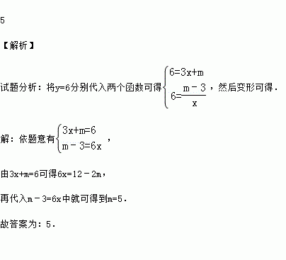 已知一次函数y=3x+m与反比例函数y=的图象有两个交点,当m= 时,有一个交点的纵坐标为6.