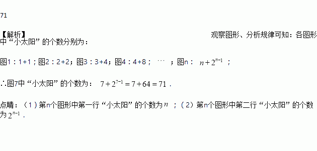 观察下列图形,它们是按一定规律排列的,依照此规律,第7个图形有________个.