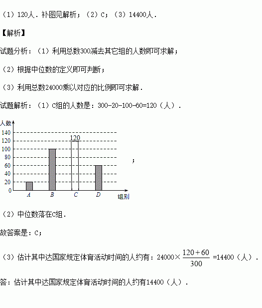¹ú¼Ò¹æ¶¨¡°ÖÐСѧÉúÿÌìÔÚУÌåÓý»î¶¯Ê±¼ä²»µÍÓÚ1Сʱ¡±£¬Îª´Ë£¬Ä³Êо͡°ÄãÿÌìÔÚУÌåÓý»î¶¯Ê±¼äÊǶàÉÙ¡±µÄÎÊÌâËæ»úµ÷²éÁËÏ½ÇøÄÚ300Ãû³õÖÐѧÉú£®¸ù¾Ýµ÷²é½á¹û»æÖƳɵÄͳ¼ÆÍ¼£¨²¿·Ö£©ÈçͼËùʾ£¬ÆäÖзÖ×éÇé¿öÊÇ£º