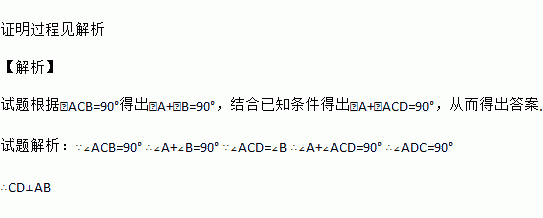 如图,在Rt△ABC中,∠ACB=90°,D是AB上一点,且∠ACD=∠B;求证:CD⊥AB;