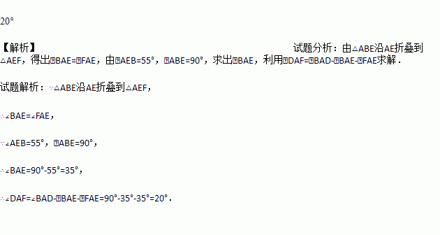 如图,E是矩形ABCD中BC边的中点,将△ABE沿AE折叠到△AEF,F在矩形ABCD内部,延长AF交DC于G点,若∠AEB=55°,∠DAF=________.