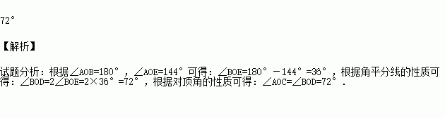 如图,直线AB,CD相交于点O,OE平分,若,则的度数是 .