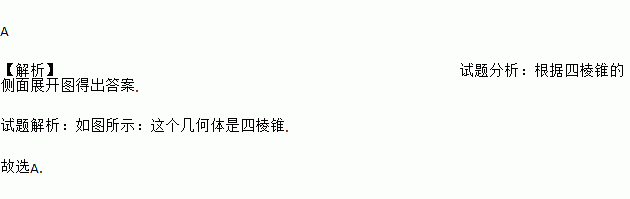 A 【解析】试题分析:根据四棱锥的侧面展开图得出答案. 试题解析:如图所示:这个几何体是四棱锥. 故选A.