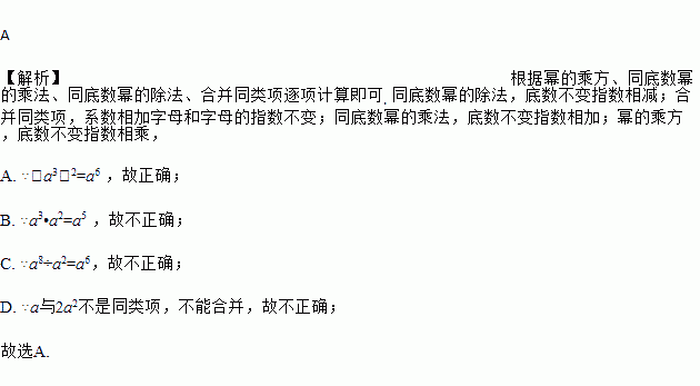 A. (a3)2=a6 B. a3•a2=a6 C. a8÷a2=a4 D. a+2a2=3a2