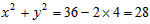 解:∵x+y=6,xy=4,