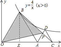 分析:先根据△AOB和△ACD均为正三角形可知∠AOB=∠CAD=60°,故可得出AD∥OB,所以S△ABP=S△AOP,故S△OBP=S△AOB,过点B作BE⊥OA于点E,由反比例函数系数k的几何意义即可得出结论.