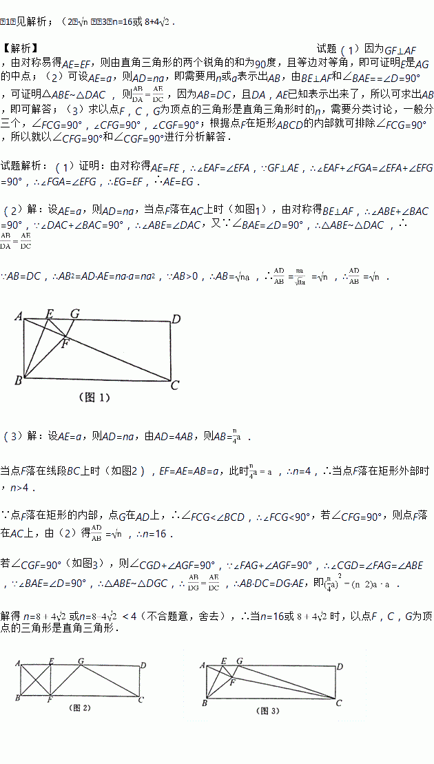(3)若AD=4AB,且以点F,C,G为顶点的三角形是直角三角形,求n的值.