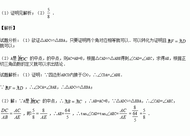 (2)如果AB=8,CD=5,求tan∠CAD的值.