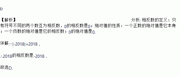 -2018的绝对值的相反数是( )