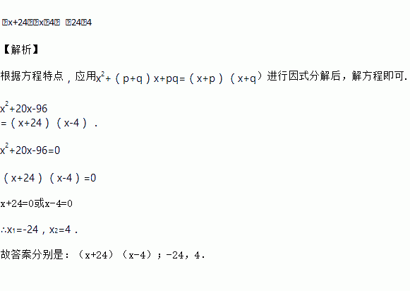 x2+20x﹣96因式分解结果为_____,x2+20x﹣96=0的根为_____.