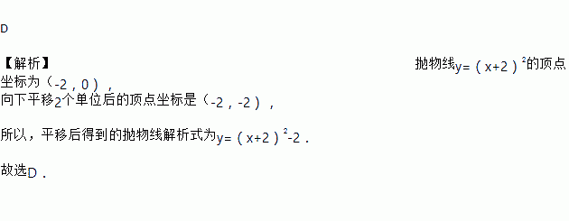 将抛物线向下平移2个单位后,所得抛物线解析式为