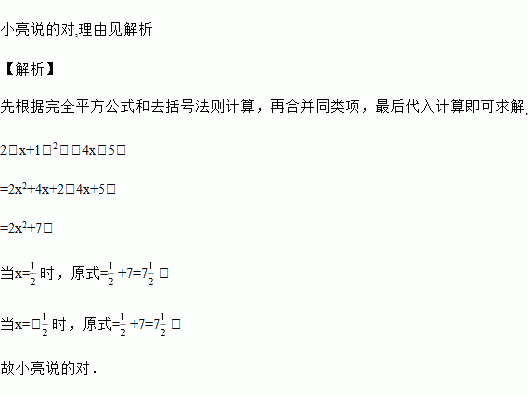 化简:2(x+1)2-(4x-5),并分别求出当x=和x=-时代数式的值.