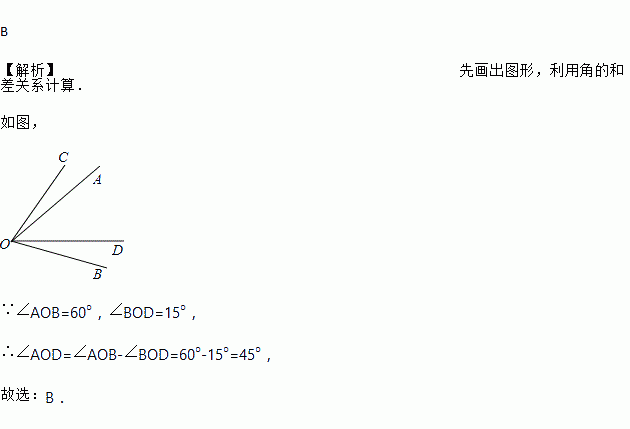 若一个60°的角绕顶点旋转15°,则重叠部分的角的大小是( )