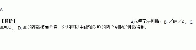 A. AB∥DF B. ∠B=∠E C. AB=DE D. AD的连线被MN垂直平分