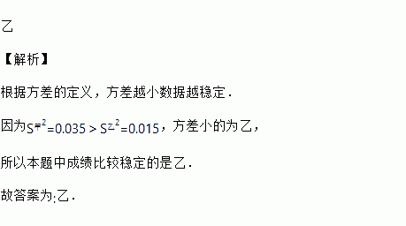 学校射击队计划从甲、乙两人中选拔一人参加运动会射击比赛,在选拔过程中,每人射击次,计算他们的平均成绩及方差如表,请你根据表中的数据选一人参加比赛,最适合的人选是__________.![]()