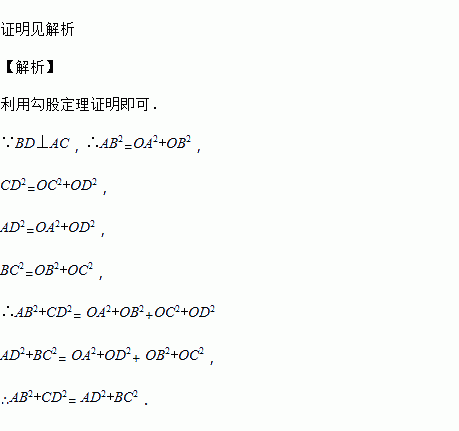已知:四边形ABCD中,BD、AC相交于O,且BD垂直AC,求证:.
