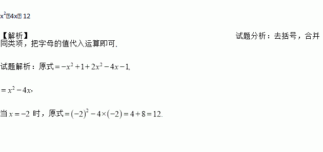 先化简,再求值:﹣(x2﹣1)+2(x2﹣2x﹣),其中x=﹣2.