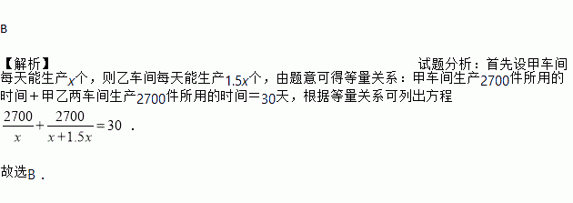 精元电子厂准备生产5400套电子元件,甲车间独立生产一半后,由于要尽快投入市场,乙车间也加入了该电子元件的生产,若乙车间每天生产的电子元件套数是甲车间的1.5倍,结果用30天完成任务,问甲车间每天生产电子元件多少套?在这个问题中设甲车间每天生产电子元件x套,根据题意可得方程为( )