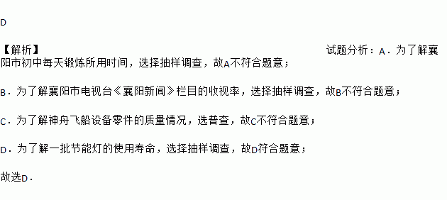 A. 为了解襄阳市初中每天锻炼所用时间,选择全面调查