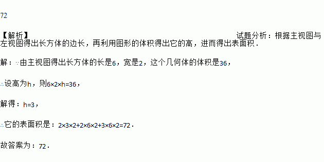 如图是一个几何体的三视图,若这个几何体的体积是36,则它的表面积是______